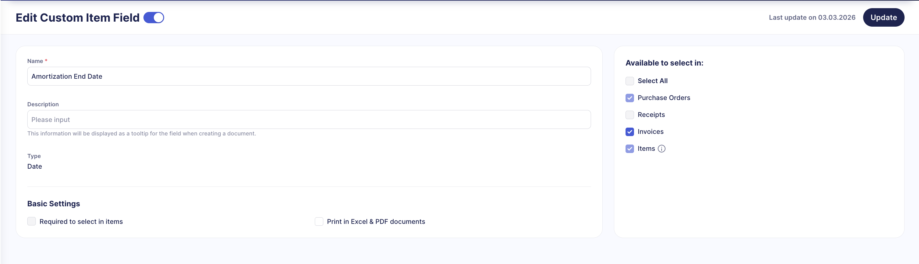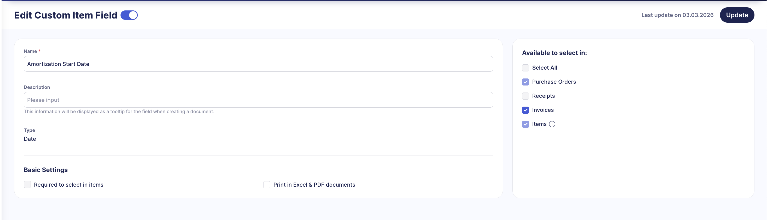 - Created Fields in Precoro
