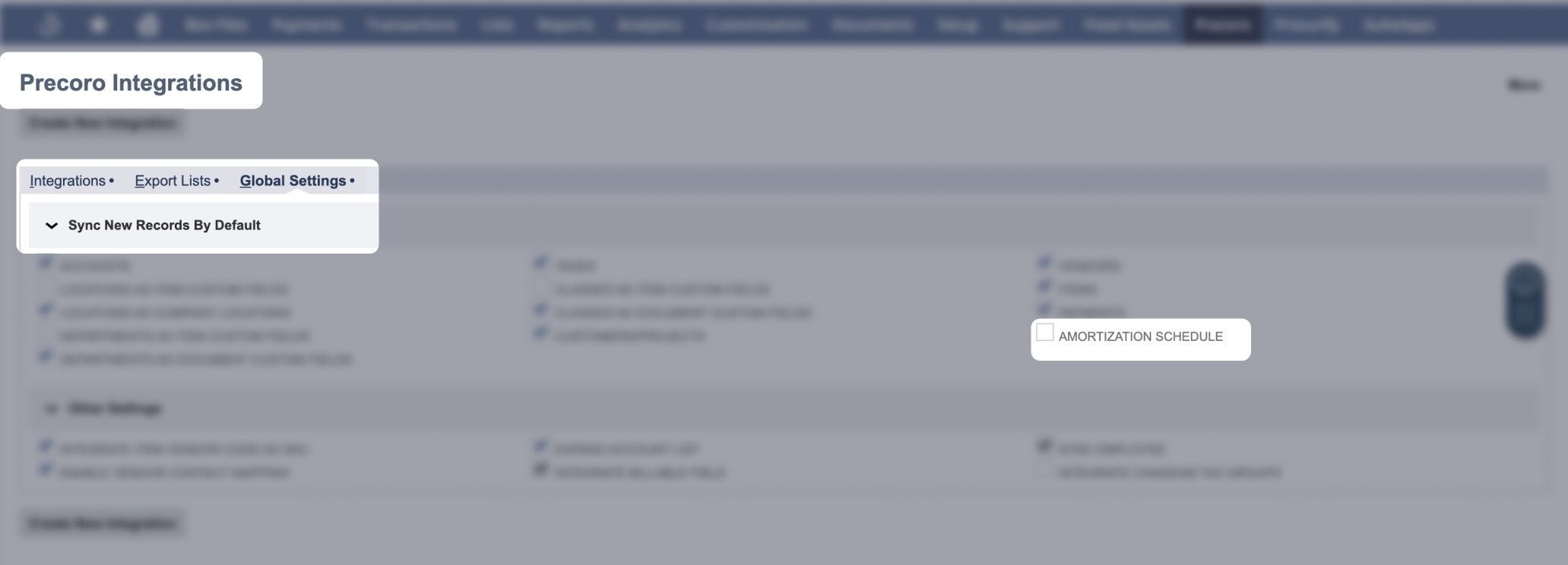 To enable this functionality, a new option is available in the SuiteApp settings. Please navigate to SuiteApp → Global Settings → Sync New Records By Default and enable the Amortization Schedule checkbox.