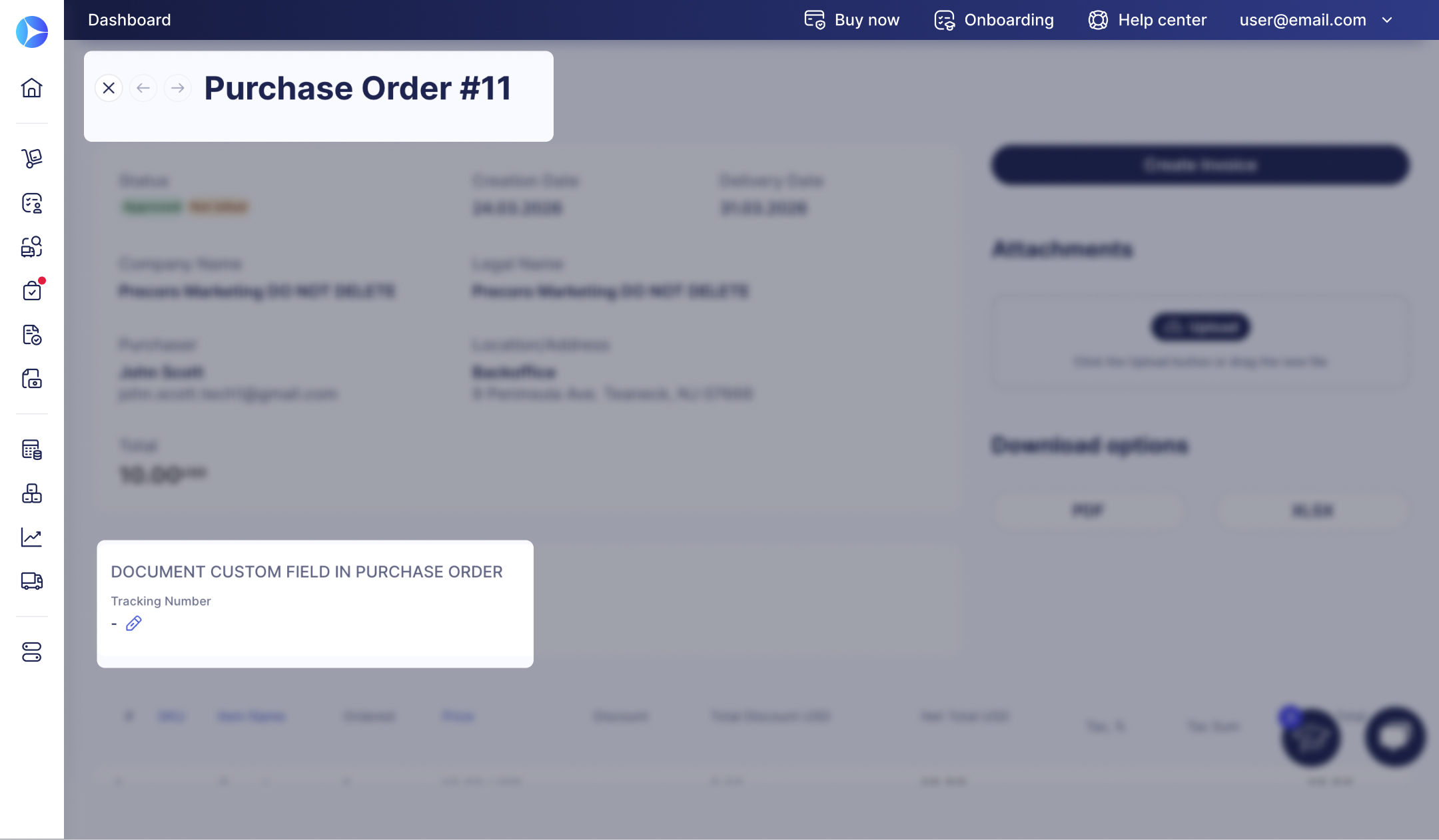 Precoro allows you to make custom fields visible to suppliers, and even let suppliers edit the values.