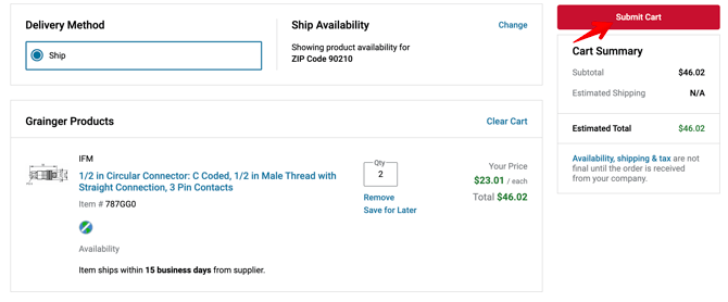 3. On the Cart page, you can see all the order information. If everything looks good, click the Submit Cart button.