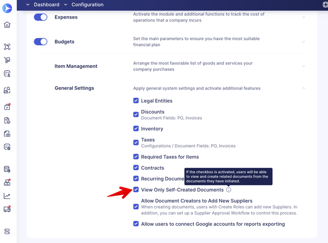 You can additionally grant access to view only self-created documents when creating new related ones, find the needed settings in the Configurations → Basic Settings → Document Setup → General Settings → View Only Self-Created Documents.