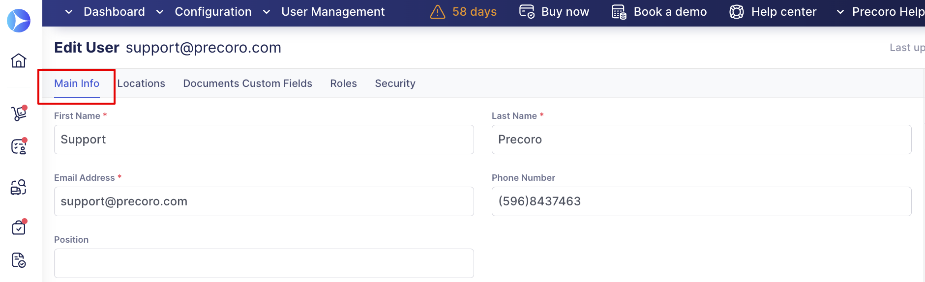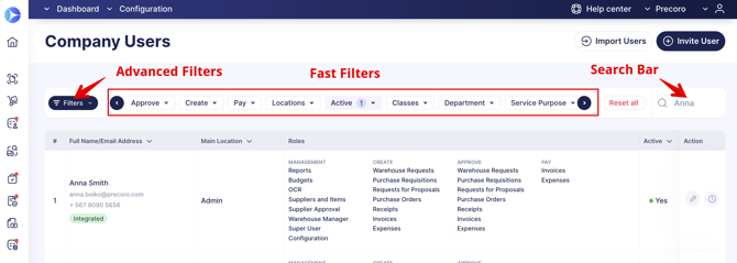 Learn how to add and invite users in Precoro, set up their roles and access, manage invitations, and use helpful tools in User Management.