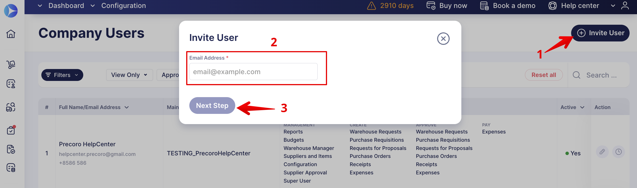 To invite a colleague, follow the steps below on the Configuration → User Management page: