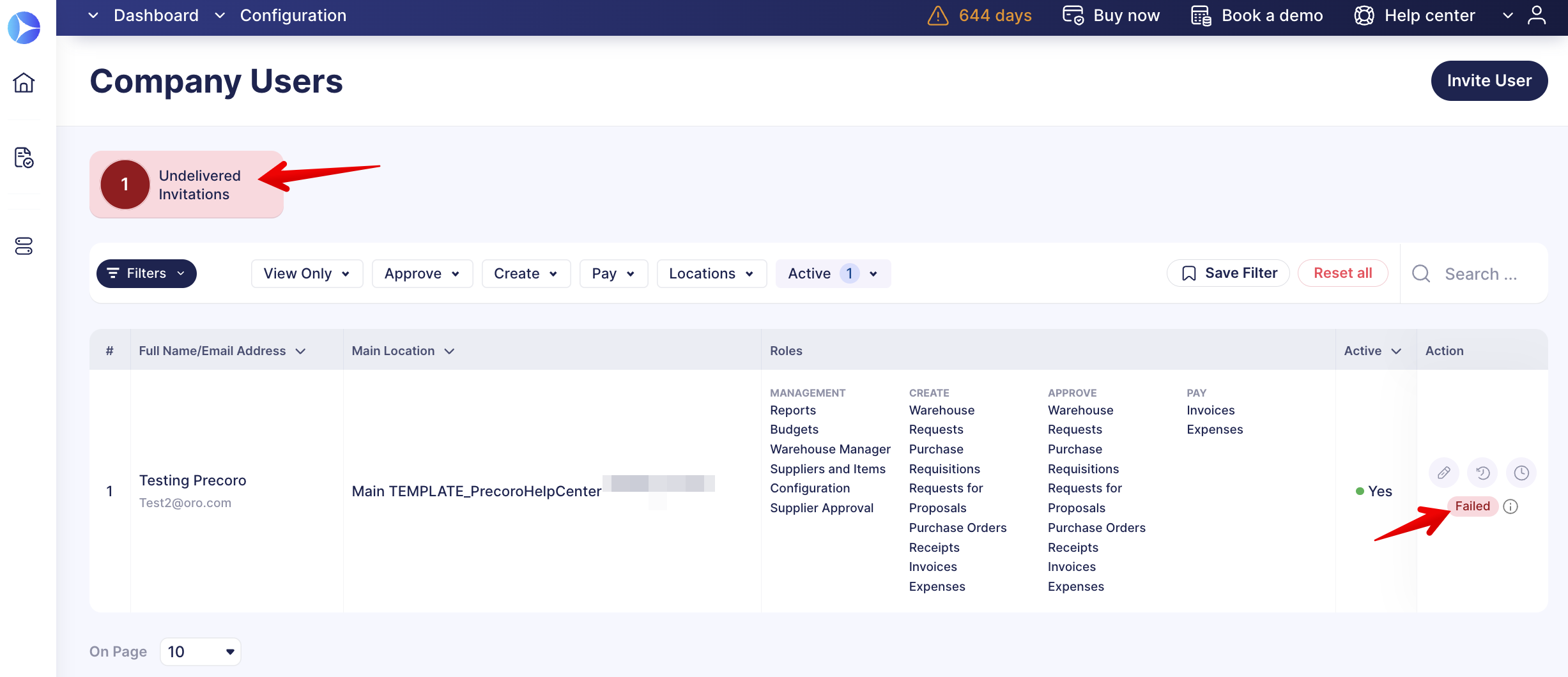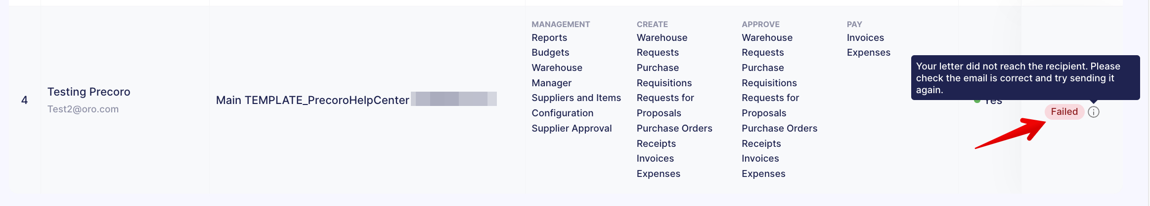 You can conveniently track the undelivered letters to the company users and quickly re-send the invitation if needed: