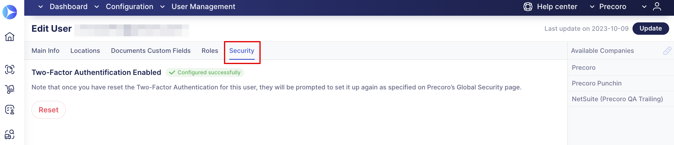 When adding new or editing the existing users you can configure the two-factor authentication which will help protect Precoro accounts from hackers and identity theft.