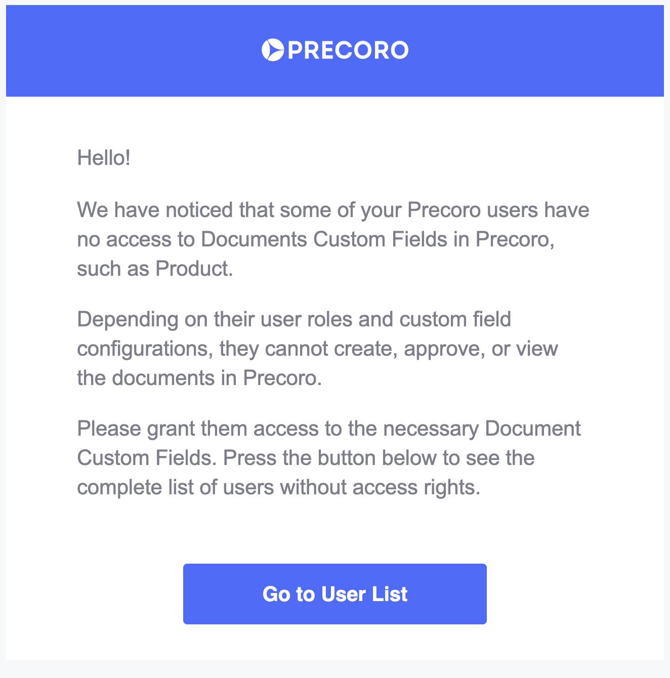 Additionally to the Infocard filter, to help you keep all these issues in check, all the Configurators will receive the letter every Monday. The letter will only be sent in case there are problematic users in your company who lack the needed CFD access.
