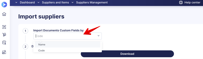 2. Choose how you would like to Import Custom Fields for Documents by using Name or Code fields. That will simplify your work with the form as you would not need to fill out both fields, just the chosen one.
