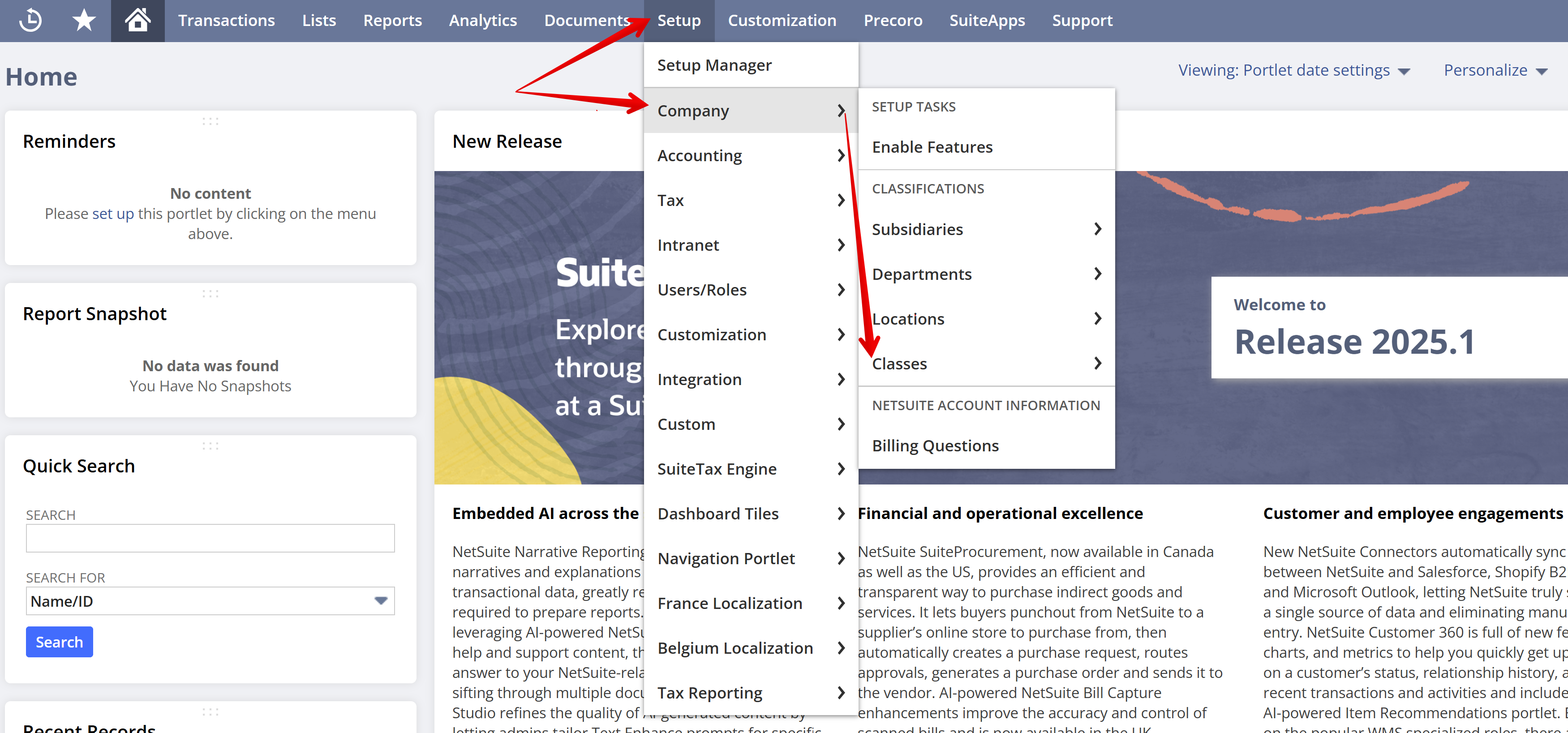 In Precoro, classes can be integrated based on their role in NetSuite: