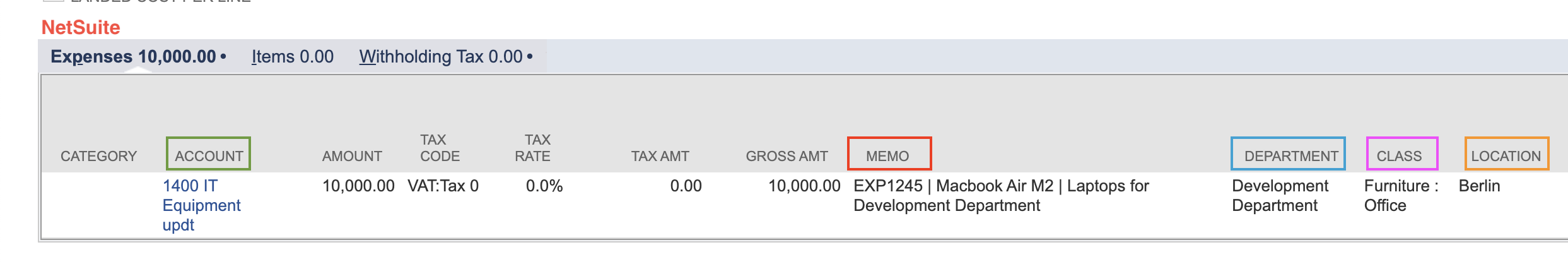 - Items added manually using the Add empty row button will be transferred to the Expenses tab in NetSuite.