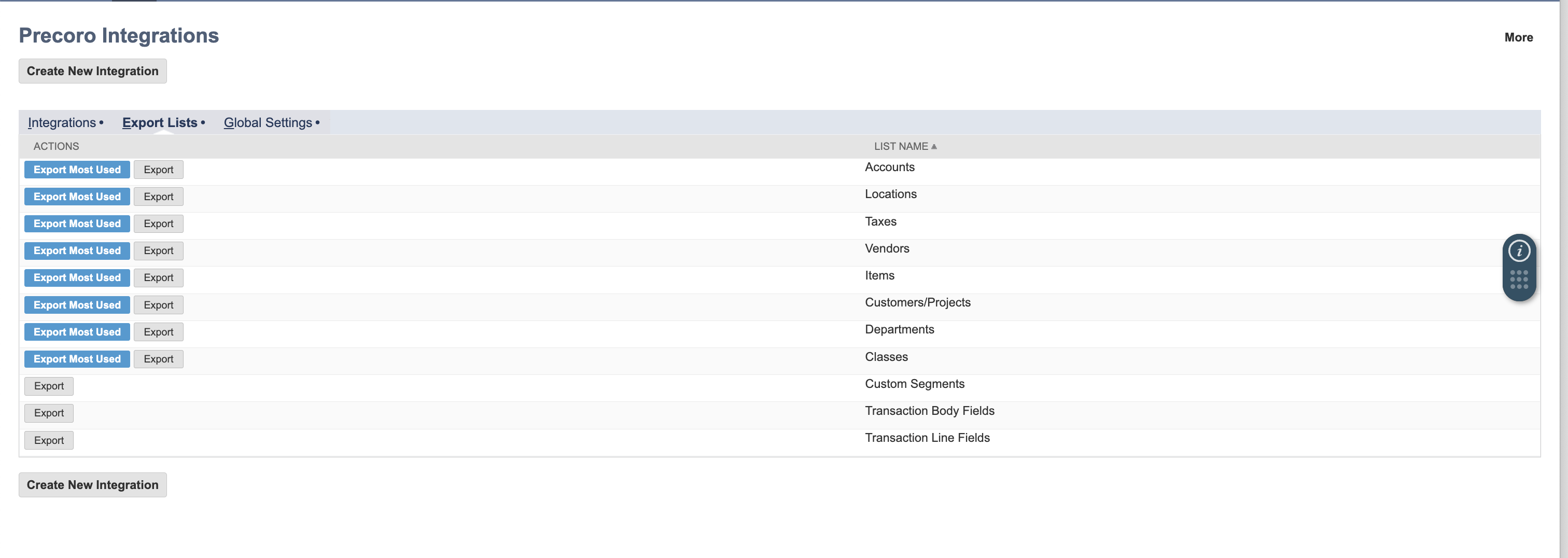 When exporting data from NetSuite to Precoro, use Smart Integration to find and export the actively used options. Instead of manually selecting options to sync, you can initiate automatic setup in a single click, and Precoro will automatically pull the options used over the past 12 months.