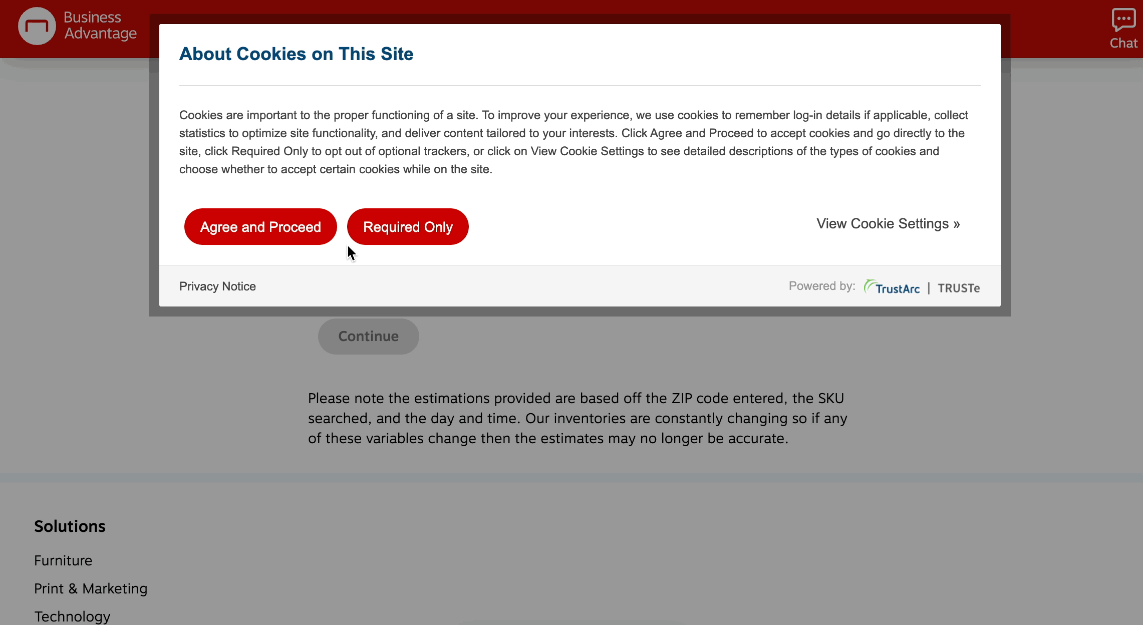 2. You will be redirected to a Staples page where you must enter the zip code.