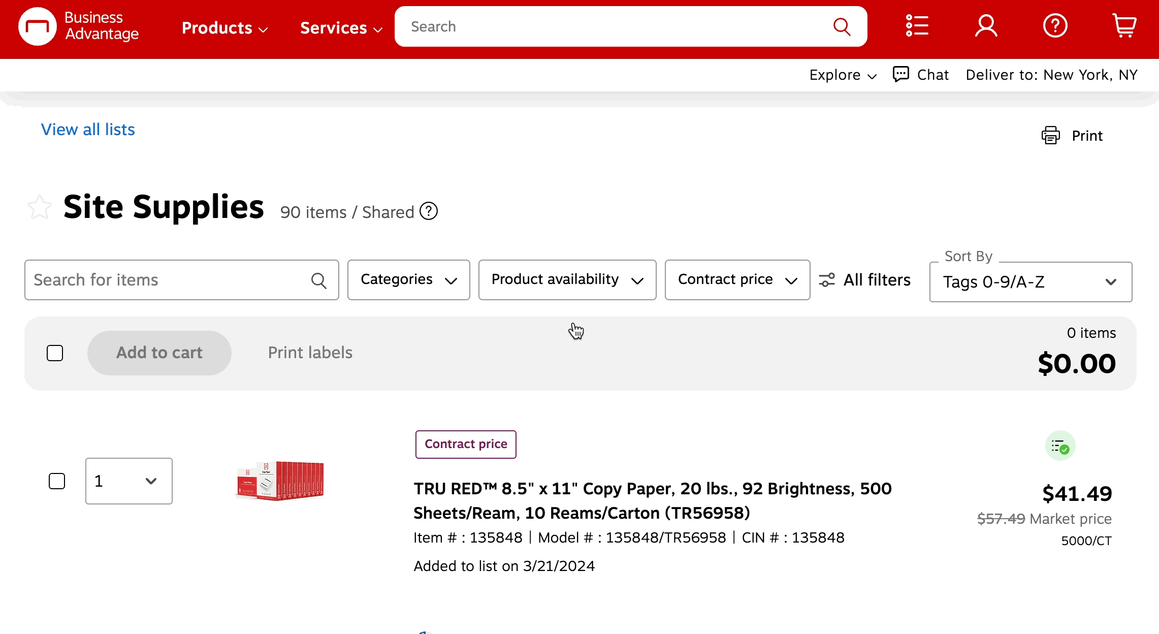 3. Next, you will see the catalog of items in the selected store. Choose the needed item, enter its quantity, and add it to the cart.